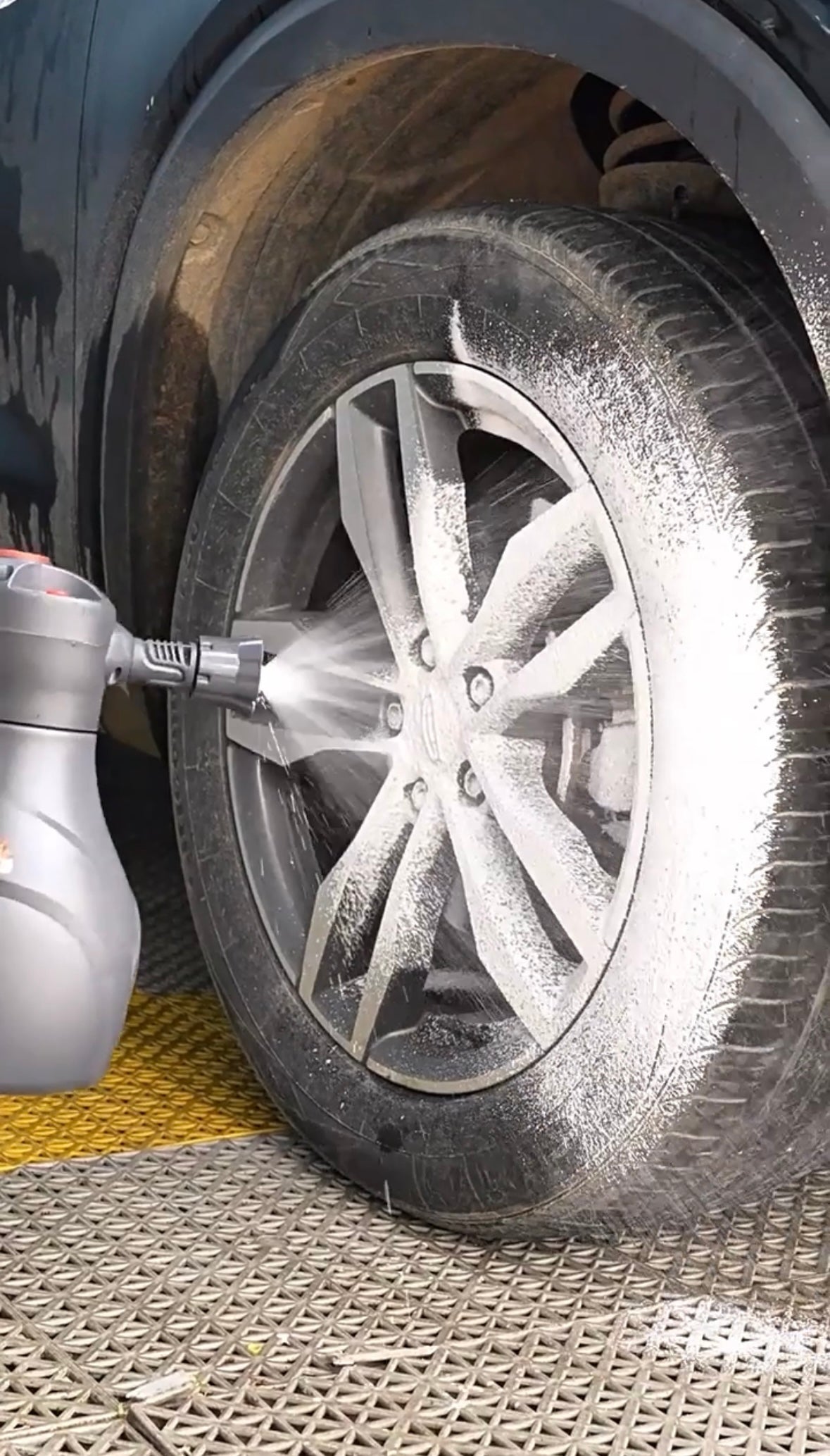 Die Schaumspritzpistole erzeugt auf Knopfdruck einen kraftvollen, dichten Schaum, der das Auto großflächig und vollständig mit Leichtigkeit besprühen kann.